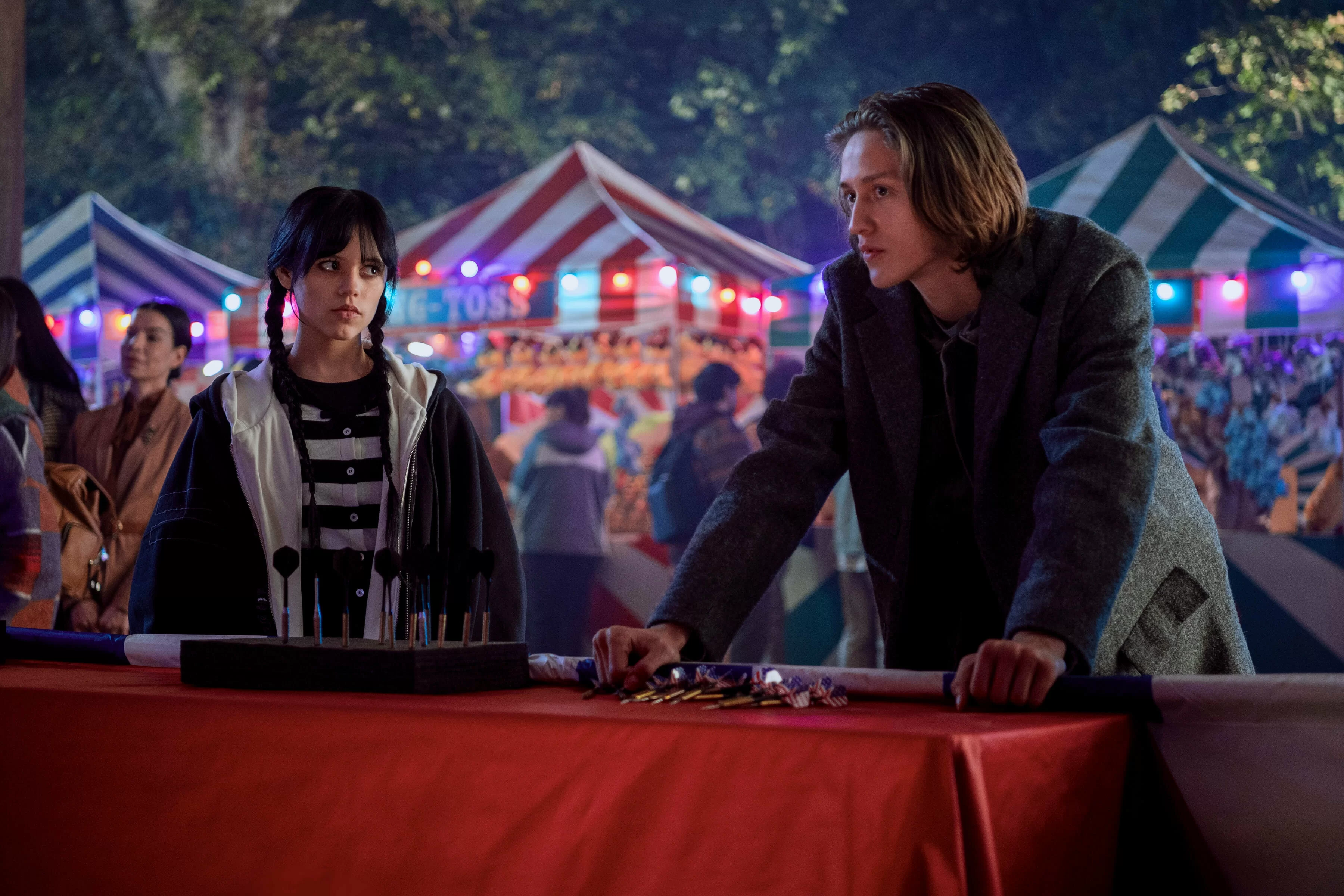 - В ролях актеры: Дженна Ортега, Хантер Дуэн, Эмма Майерс, Джой Сандэй, Джорджи Фармер, Victor Dorobantu, Мооса Мостафа, Тора Бёрч